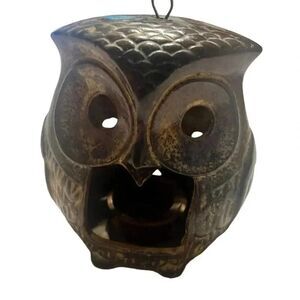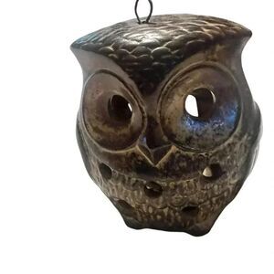 Vintage Double Sided Owl Stoneware Hanging Tealight Candle Holder