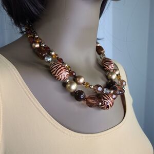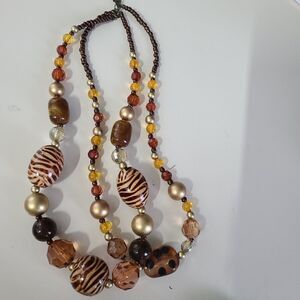 Vintage Necklace Double Strand 10" Drop Warm, earth tones of rust, brown and oranges Nice condition