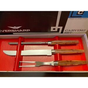 Vintage EVERSHARP Stainless Steel 3 Piece Carving Set In Original Box