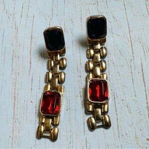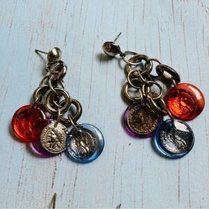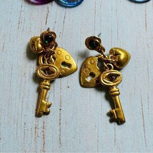 Goldtone acrylic discs with mini coins, Goldtone link blue red crystal, goldtone green crystal heart lock