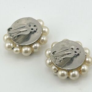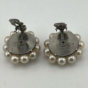 Vintage Earrings Pearl & Aurora Borealis Large Clip Ons Silver Tone