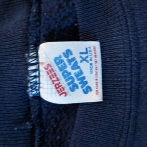 Make a statement with this classic Men's Vintage Jerzees Sweatshirt. Cut from a great 50/50 cotton blend, this navy blue crewneck sweatshirt features a large Eastern Oklahoma University emblem on the front complemented by ribbed cuffs for the perfect fit. Proudly made in the USA, this is the perfect way to rep your school and show your style. ~ Size XL