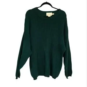 Vintage Eddie Bauer green 100% cotton men's sweater 26" pit-pit 31" long