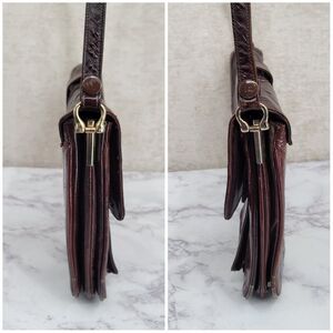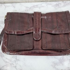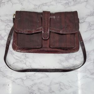 Vintage Eel Skin Leather Shoulder Bag Dark Brown with Red Undertones