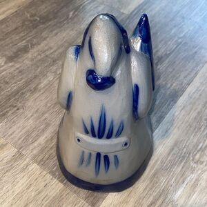 Eldreth Pottery Salt Glazed Blue Gray Santa With Tree Signed 8in.