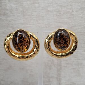 Vintage Elegant Gold Toned Faux Amber Doorknocket Clip On Earrings