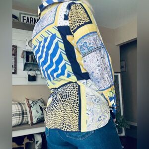 Vintage Elliott Lauren Funky Retro Mixed Print Button Up Top