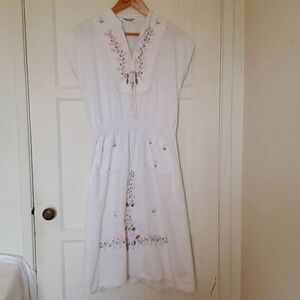 Vintage Embroidered and Crocheted Floral Short Sleeve Dress