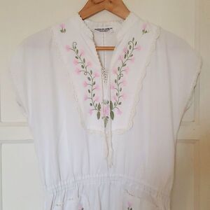 Vintage Embroidered and Crocheted Floral Short Sleeve Dress S