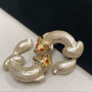 Vintage Enamel And Rhinestone Fox Pins (2) Brooches