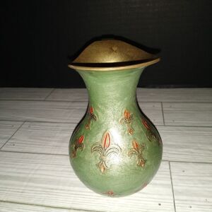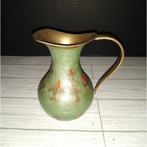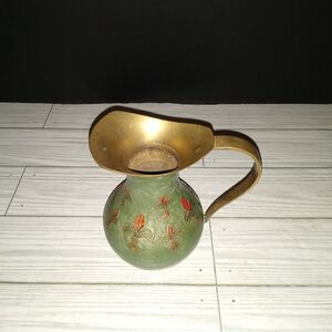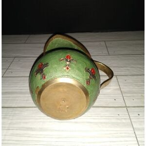 Vintage Enameled Brass Cloisonne Small Green Pitcher Home Decor 5in Tall. Has some wear from age use and storage. See pictures. Sold as is.