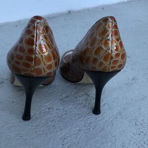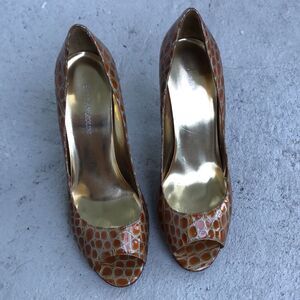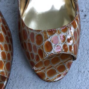 The color on these is literally like a caramel toffee with blue gray. Super comfortable. 4 inch heel
