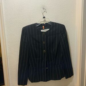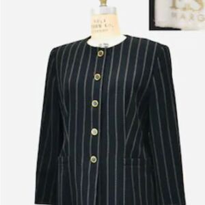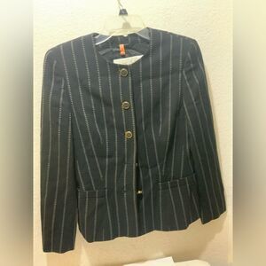 Vintage Escada Pinstripe Wool blend Escada Jacket Blazer Black white Striped size 36
