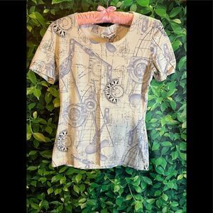 Very soft blouse with industrial print size 36 by Escada Margaretha Ley. Scoop neck 90 percent cotton.