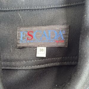 Check out the pictures. This is a great vintage Escada that is in good condition. Fresh from the cleaners. Also the 1980s padded shoulders with Dolman sleeves. It was a little too wide for me through the top so I had it altered, but they only did a base and stitch so that it could be reopened easily.Measuring across the shoulders is 18 they are meant to be Doman pit pit is 17, the waist is 14. The rise is 11, inseam is 30. Made in western Germany.