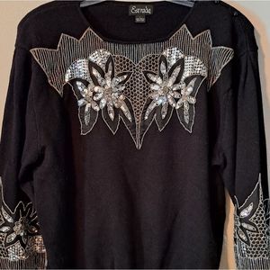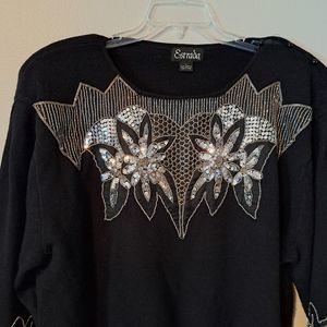 Beautiful vintage sweater adorned with Sequins and beads. Shoulder pads and long sleeves.