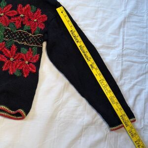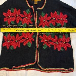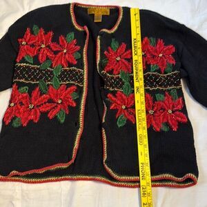 Vintage Eve Tyler Christmas cardigan sweater size women’s large black beaded poi