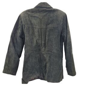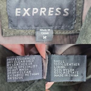 Vintage Express Leather Jacket Shacket Notched Collar Button Down Forest Green M