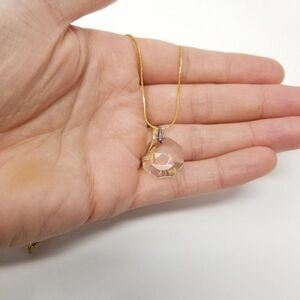 Vintage Faceted Clear Glass Pendant and Gold Tone Chain, Minimal, Dainty, Elegan