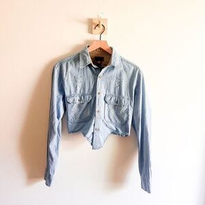 Vintage Faded Glory Originals Bedazzled Chambray Button Down Size S