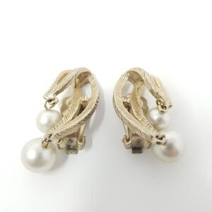 Vintage Faux Pearl Dangle Clip On Earrings, Estate jewelry