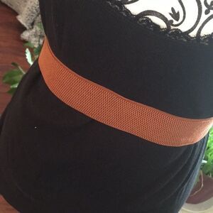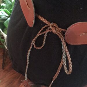 VGVC, camel color with faux leather front, cute little tasseled tie front, elastic stretch back, see pics for measurements, Questions? Leave a comment below!