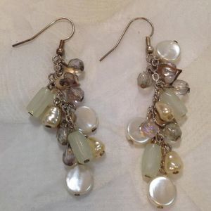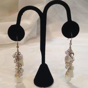 Vintage Faux Mother Of Pearl And Bead Dangling Earrings