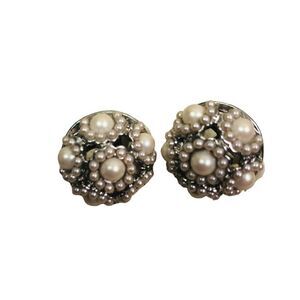 Vintage Faux Pearls SilverPlated Clip On Earrings Excellent preowned condition White faux pearls, round design Ship same or next day