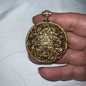 **NOT A REAL WATCH** Painted watch face on enamel with a faux pocket watch case. Intricate and beautiful. Vintage pendant.