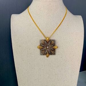 Vintage Filigree Pendant Openwork Necklace on Gokd Tone Sterling Silver Chain
