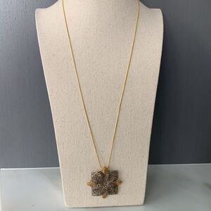Set on a gold tone sterling silver chain, the pendant has the dimensional lightness of lace.