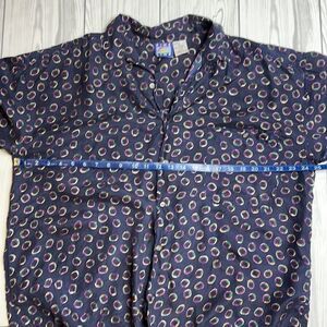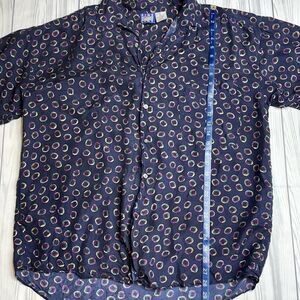 Vintage Fine Line All over Print Silk Button Down Blue Large