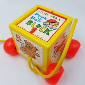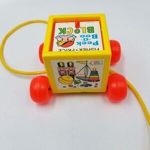 Vintage Fisher Price Peek-a-Boo Block in box 1970-1979 FP Pull Toy