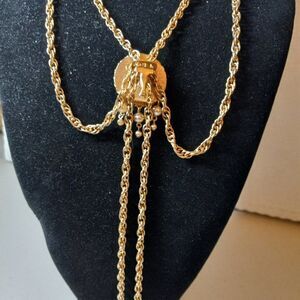 Decorative Fleur de lis gold tone metal with 3 dangling faux Pearls
