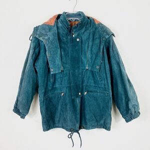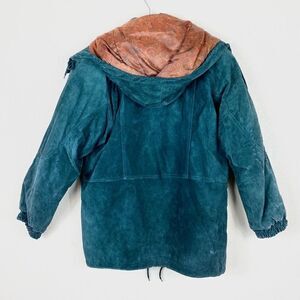 Vintage Flight Club Teal Suede Hooded Bomber Jacket