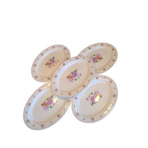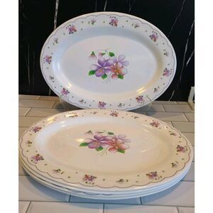 Vintage Floral Melamine Oval Dinner Plate Set of 5 Pink/ Purple 14"x10" Platter