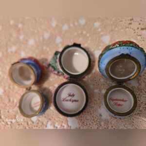 light of three ceramic vintage jewelry boxes all 3 are different very cute