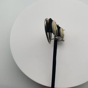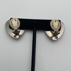Vintage Foree Silver wash Heart Shield Clipback earrings, Unmarked