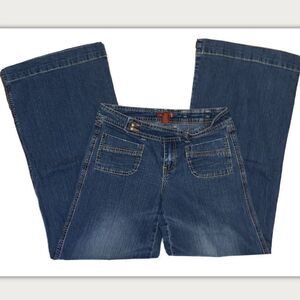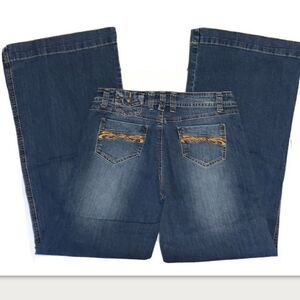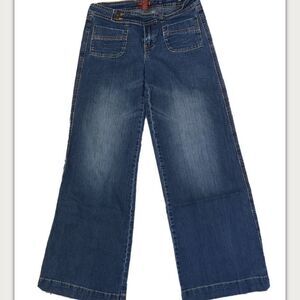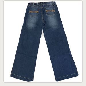 Vintage jeans, 70’s style wide leg. Embroidery on back pockets and buttons off the side and middle. In good vintage condition. 32in inseam