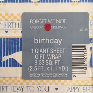 Vintage Forget Me Not American Greetings Birthday Duck Giant Sheet Gift Wrap