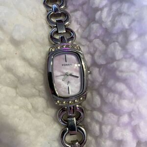 Vintage Fossil Stainless Steel Watch with Pink Face. I’m good used condition! Just needs a battery.