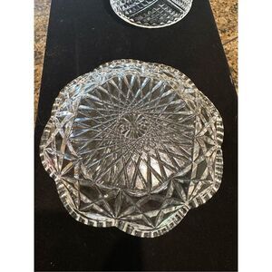 Circa 1970 vintage Fostoria diamond cut glass dish with bell jar top for Avon. Crystal clear pressed glass with no chips or cracks 6 1/4 inch round. Bottom dish, top is 5 inches tall.