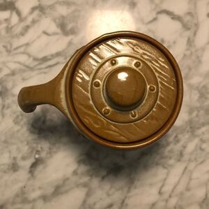 No chips or cracks. It is so cute! It looks like a little barrel. It’s from the Plainsman collection and is in the color desert gold. It is about 3 1/2” tall.