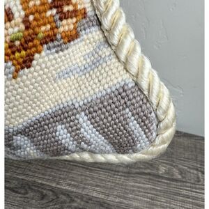 Vintage French Canvas Tapestry Accent Pillow Needlepoint Woman Embracing The Dog