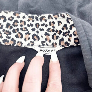 Vintage Full Zip Vest Womens Size Black Pocket Leopard Trim Outdoor 90s Classic