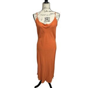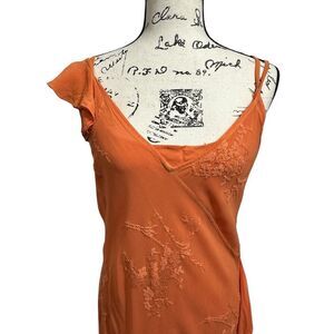 Vintage GHOST Layered Sheer Ruffle Asymmetrical Fairy Y2K Slip Orange Dress, M
