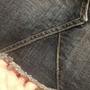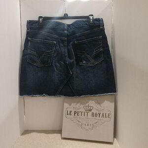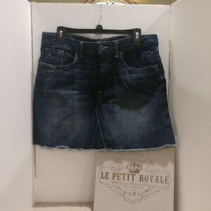 Raw hem jeans skirt in excellent pre-owned condition. Flat Measures- Waist 16.5 Length 16"