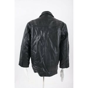 Vintage Authentic Gap Womans Black Leather Jacket Coat Size L ( runs small) - seemeasurements