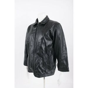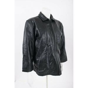 Vintage Gap Womans Black Leather Jacket Coat Size L Full Zip Collared Biker Moto