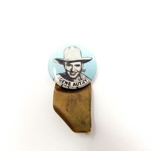 Vintage Gene Autry Pin Back with Ribbon, Blue White, Country Music, Brooch